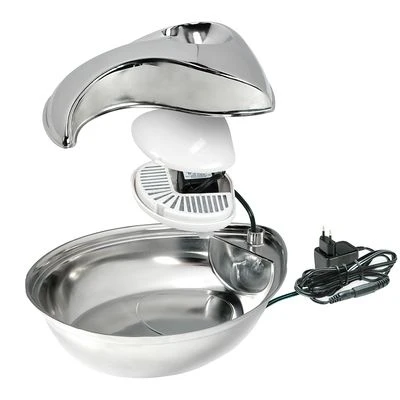 Elegante bebedero para gatos y perros pequeños en acero inoxidable. Su forma en gota de agua aportará un toque de estilo a tu hogar.